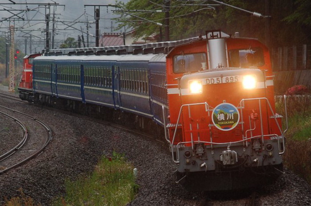 編成はオヤ1両(客扱いなし)を含む12系5両で、終点の横川駅では機回しができない為、DD51-842とDD51-895のプッシュプルで牽引した。